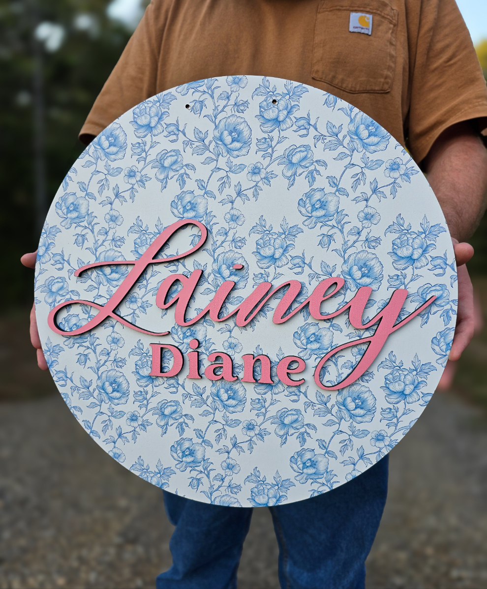 Blue Toile Name Sign