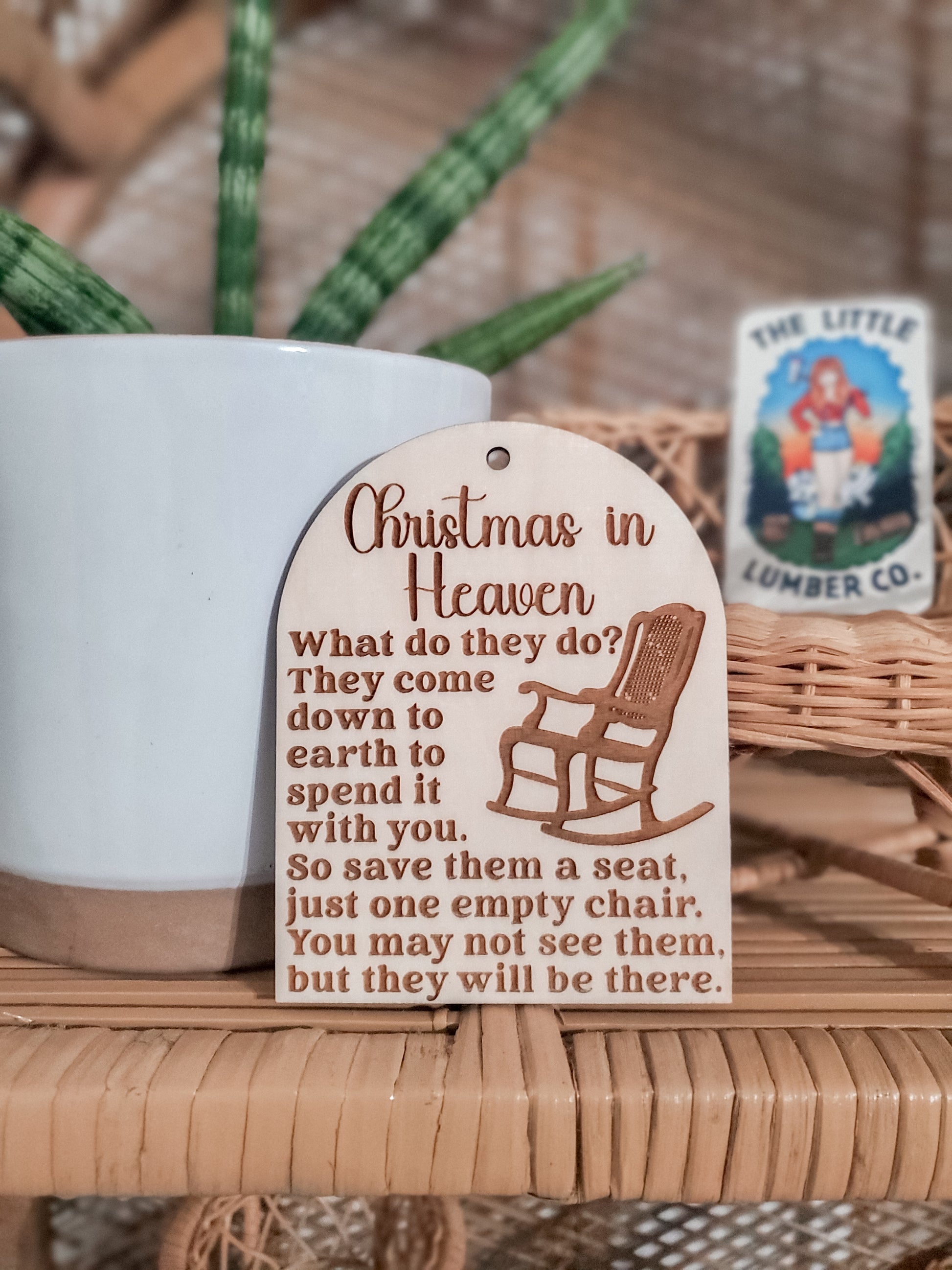 Christmas in Heaven ornament. Remember your loved ones in Heaven this year by adorning your tree with this sweet memorial ornament. I can add a name + date on the back for an additional fee if desired.